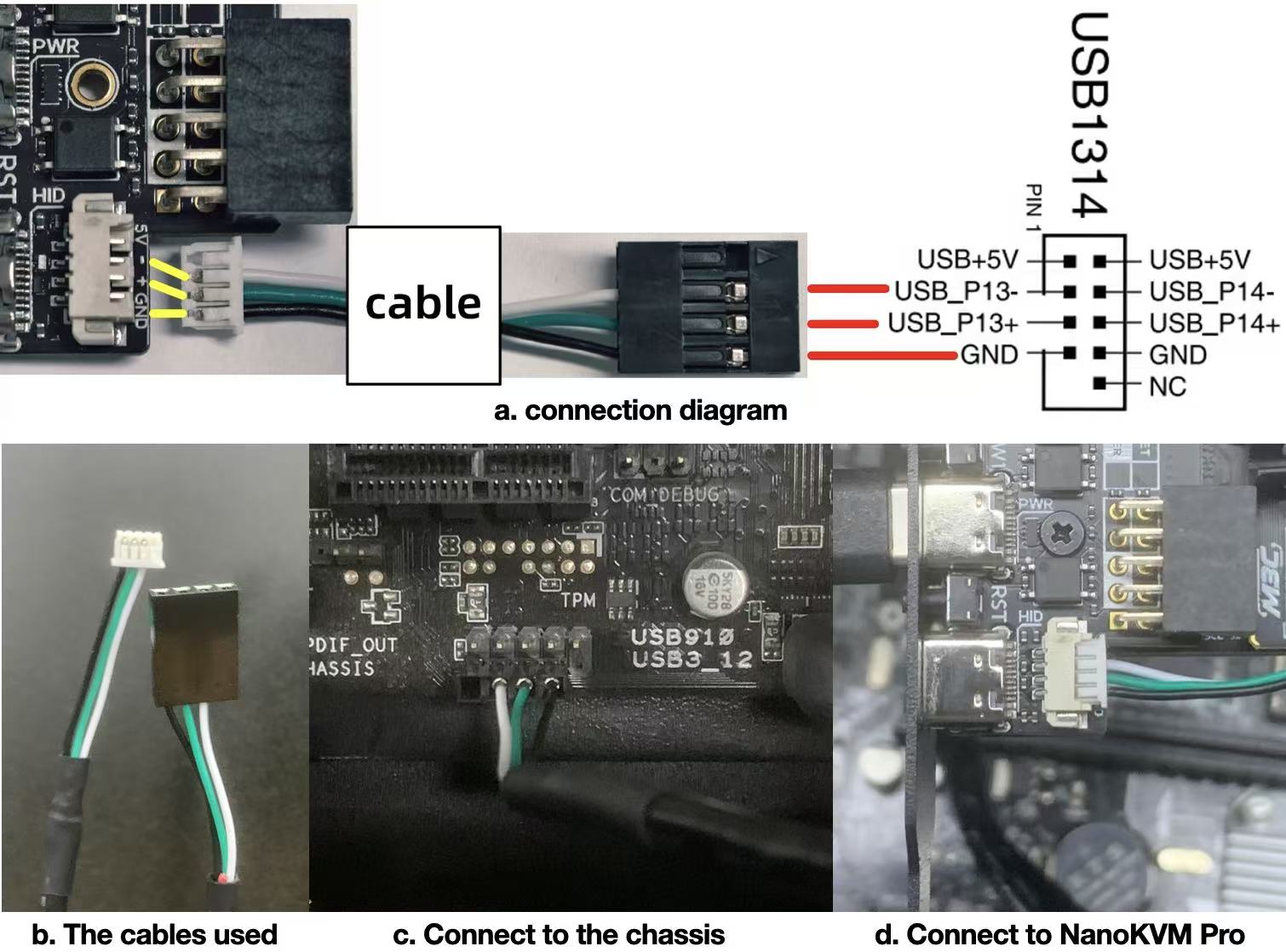 ❗❗❗首批用户(线缆和下图b有区别)若选择机箱内接线的方式,请查收邮件,并按照邮件的修改方式连接线缆,或者参考此处修改线缆